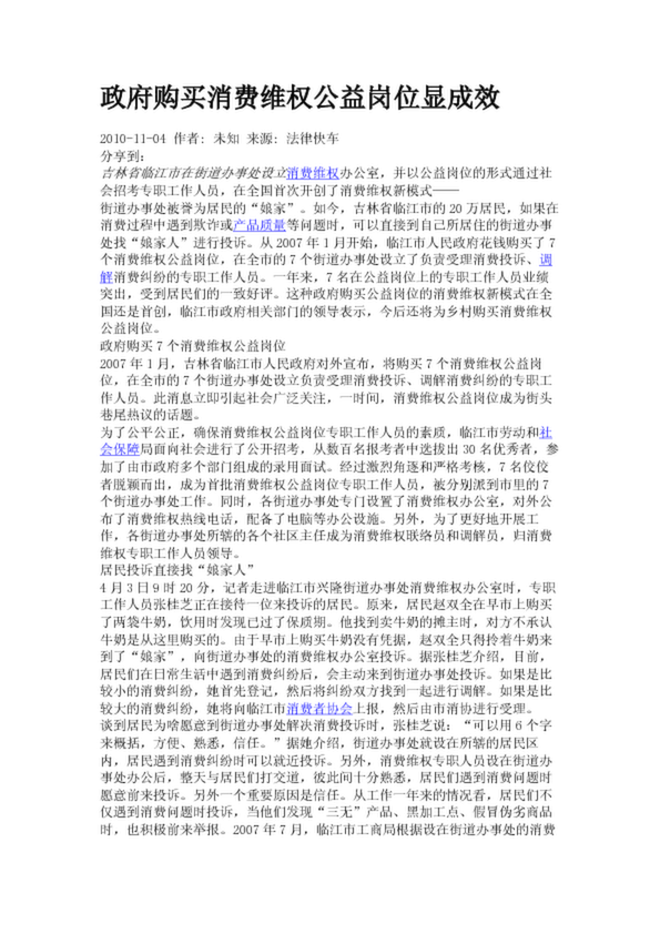 政府購(gòu)買消費(fèi)維權(quán)公益崗位顯成效