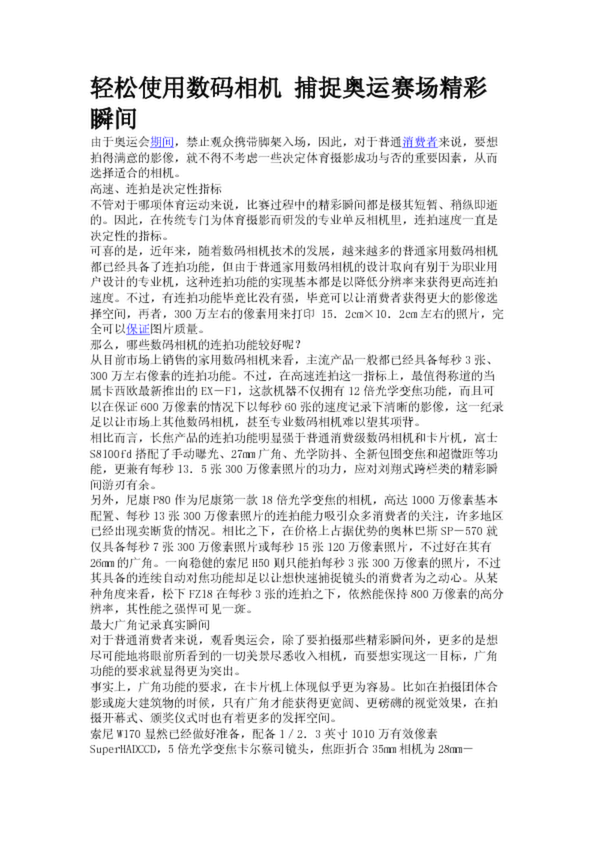 輕松使用數(shù)碼相機(jī) 捕捉奧運(yùn)賽場精彩瞬間