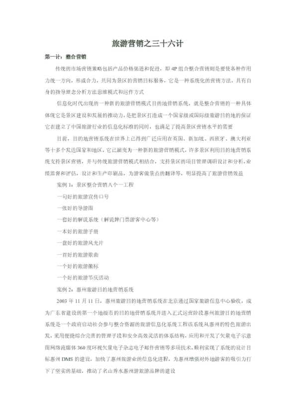 為加快旅游國際化步伐,把張家界建設(shè)成為世界旅游目的地,特提出以下三十六計(jì)對策措施供決策部門參考。 第一計(jì): 傳統(tǒng)的市場營銷策略包括產(chǎn)品價格渠道和促進(jìn),即 4P 組合整合 營銷則是要使各種作用力統(tǒng)一方向,形成合力,共同為景區(qū)的...