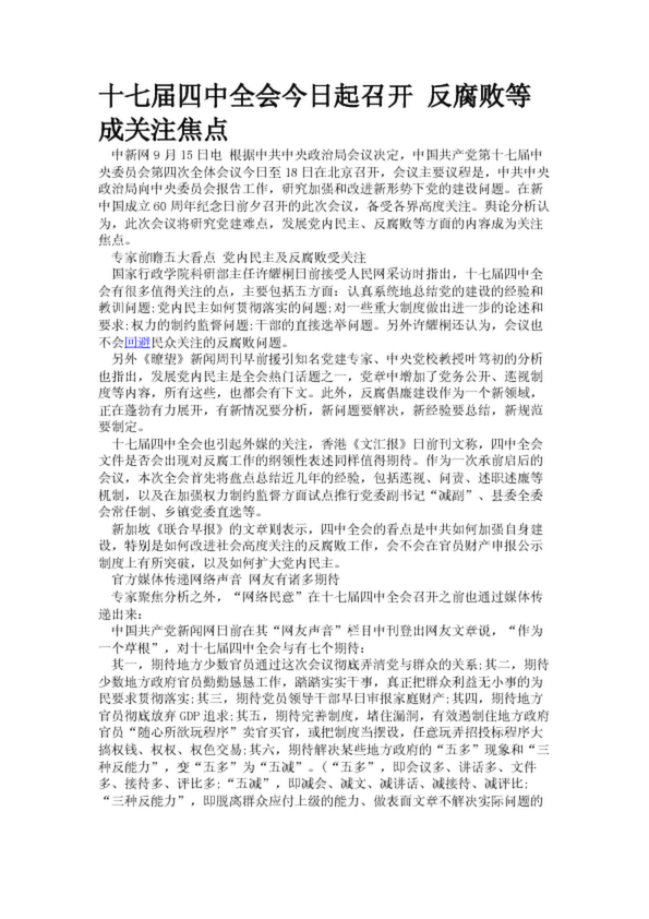 十七屆四中全會(huì)今日起召開 反腐敗等成關(guān)注焦點(diǎn)