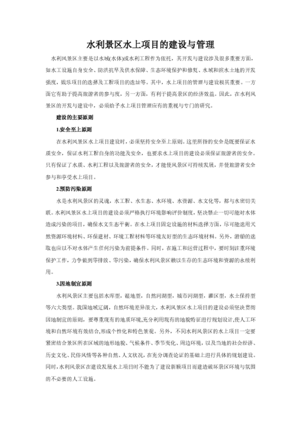 水利景區(qū)水上項(xiàng)目的建設(shè)與管理