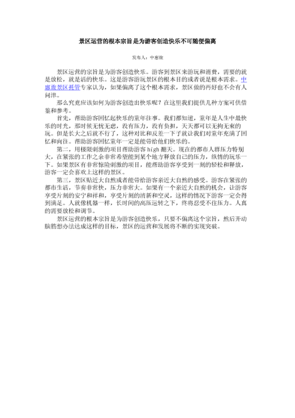 景區(qū)運(yùn)營(yíng)的根本宗旨是為游客創(chuàng)造快樂(lè)不可隨便偏離