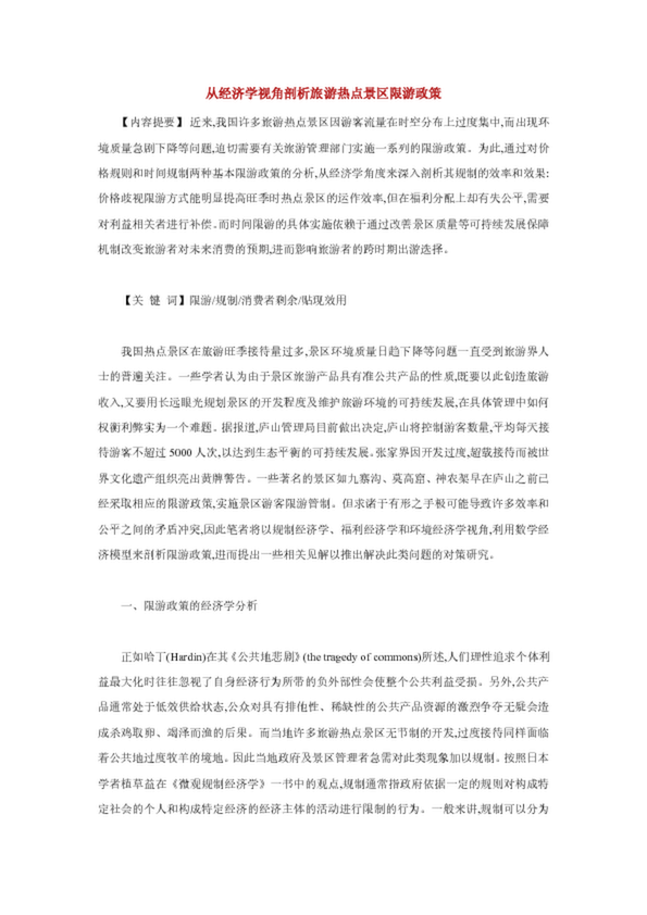 從經(jīng)濟(jì)學(xué)視角剖析旅游熱點(diǎn)景區(qū)限游政策