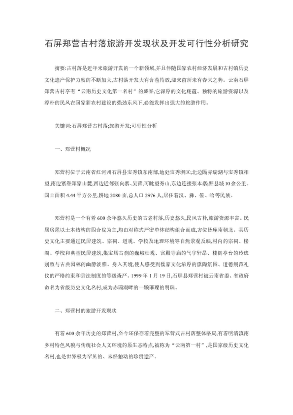 石屏鄭營(yíng)古村落旅游開發(fā)現(xiàn)狀及開發(fā)可行性分析研究