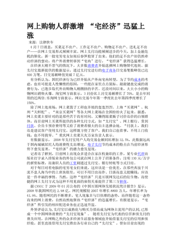 網(wǎng)上購物人群激增 “宅經(jīng)濟(jì)”迅猛上漲